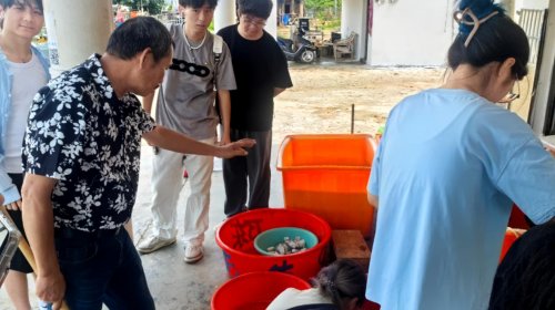 随后,实践团走访了尖山蟹养殖基地,了解这一地方特色产业如何带动村民增收致富。农户辛勤劳作、笑对生活的画面深深打动了成员。村里新建的住宅和繁忙的码头,无不反映出特色养殖业对当地经济发展的积极推动。