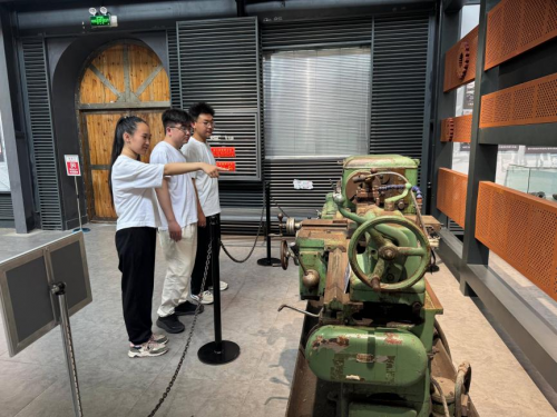 图为实践团成员在观看80年代普通机床。徐天凯供图