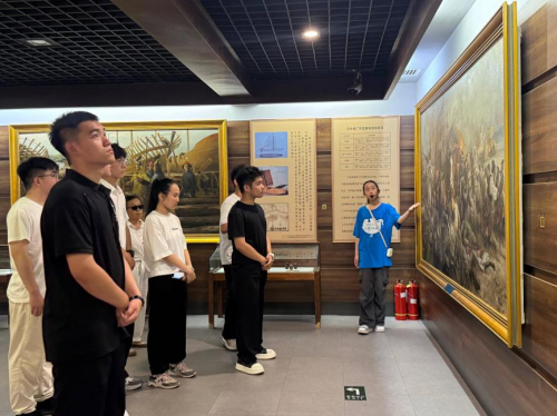 图为实践团成员在吉林水师营博物馆观看雅克萨之战油画。徐天凯供图