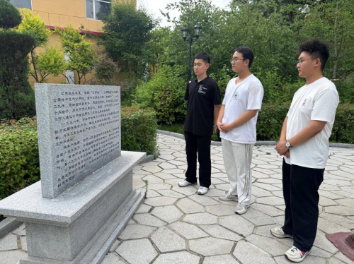图为实践团成员观看撰写吉林机械制造局创始人吴大瀓个人事迹的石刻。徐天凯供图