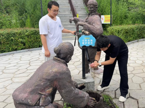 图为实践团成员操作博物馆内水井。徐天凯供图
